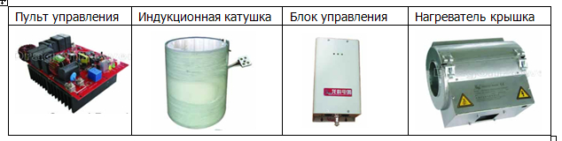 Он состоит из правления индукционные, индукционные катушки, контролировать крышку коробки и нагреватель. Ключевыми элементами являются Импортированные прецизионные компоненты. Структуры и программное обеспечение разработаны по военным стандартам. Мы приобрели 13 патентов.
