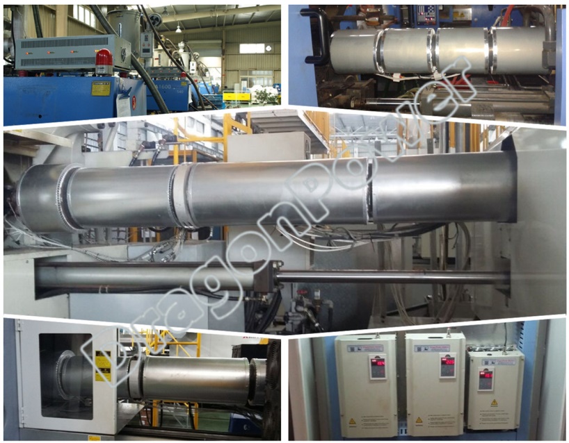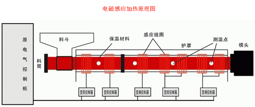 電磁感應加熱器主要適用于塑料(橡膠)注射機,擠出機,吹膜機,拉絲機,塑料薄膜,管材,線材等。電磁加熱技術是直接發(fā)熱(料筒自身發(fā)熱),在料筒外部又包裹著隔熱保溫材料,保溫材料上繞電磁線,利用電磁感應使料筒產(chǎn)生渦流發(fā)熱,大大減少了熱傳導損失和熱量對空氣的散失,提高了熱效率,避免了環(huán)境溫度的上升,因此節(jié)電效果十分顯著,可達30%~75%。因此電磁加熱圈本身并不發(fā)熱,而且是采用陶瓷材料和高溫電纜制造,所以不存在原電熱圈的電阻絲在高溫狀態(tài)下氧化而縮短使用壽命的問題,具有使用壽命長、升溫速率快、無需要維修等優(yōu)點,減少了維修時間,降低了成本。